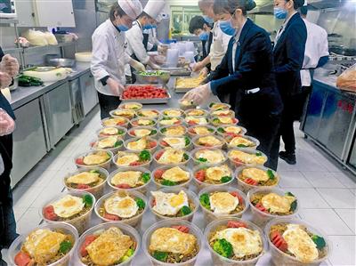 為落實好公司免費供餐的要求,讓駐守職工吃得放心,吃得滿意,寶鈦賓館駐守的43人,每天從凌晨五點半一直忙碌到深夜,十幾個小時高強度的工作,只為保證周邊1000余名職工的三餐供應;生活服務公司克服時間緊、人員少、原輔材料緊張等種種不利因素,主動與老區、工業園、眉縣產業園相關單位對接,組織餐飲經營戶集體作業,優化訂餐、備餐、配餐、取餐流程,全力為駐守職工提供質優量足的三餐。